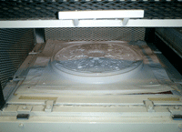 The basic process involves heating a sheet of plastic until it is soft and then sucking it in to shape over a mould. Once the moulding has cooled it can be trimmed to remove any areas of plastic which are not required in the final component.